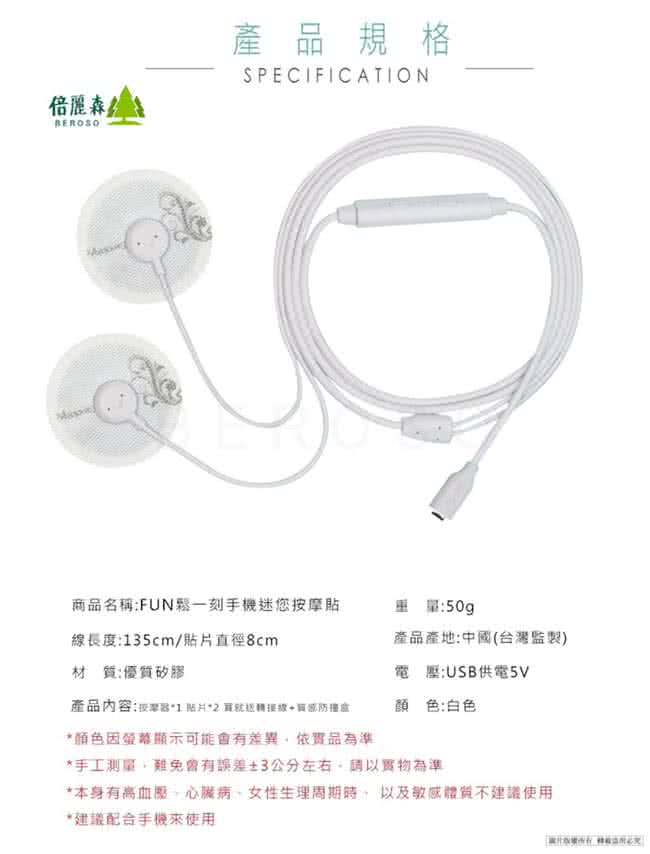 商品名稱:【倍麗森Beroso】筋力HIGH 隨身手機按摩器運動按摩貼(BE-A00015)
