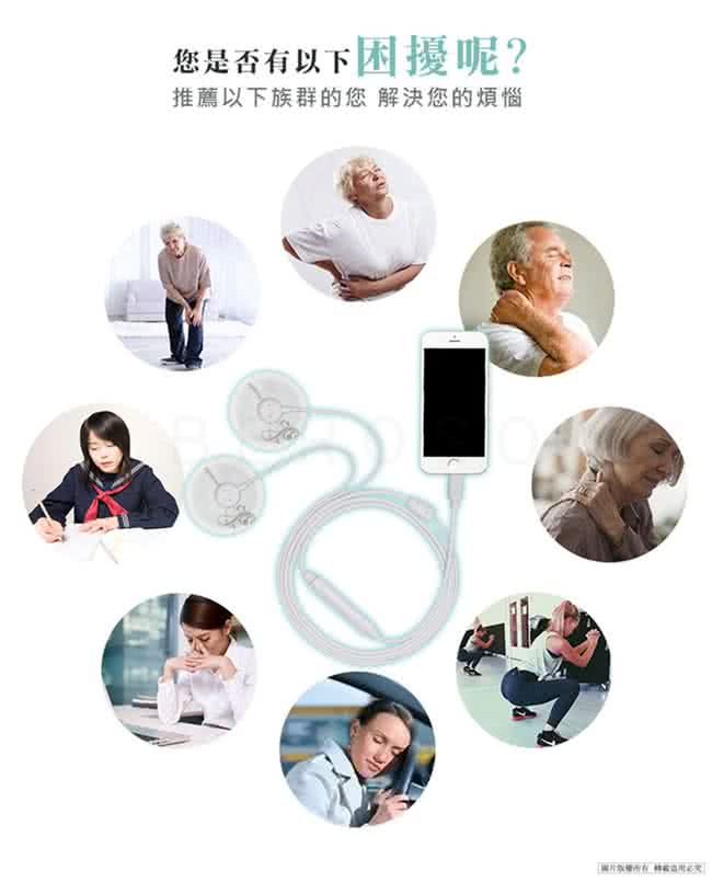 產品內容:按摩器*1 貼片*2 買就送轉接線+質感防撞盒